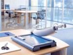 Gilotyna A4/B4 (dł. cięcia 360 mm, 35 kartek) ze stabilną, metalową podstawą. Wymienny nóż górny i dolny ze stali Made in Solingen. Obrotowa opatentowana osłona ostrza, automatyczne dociskanie ciętego materiału, 2 nakładki kątowe i regulowany ogranicznik tylny. Możliwość cięcia papieru, skór, tworzyw sztucznych, cienkich blach alu, mosiądz, stal do 0,8 mm. Wgłębienia uchwytów ułatwiają przenoszenie.