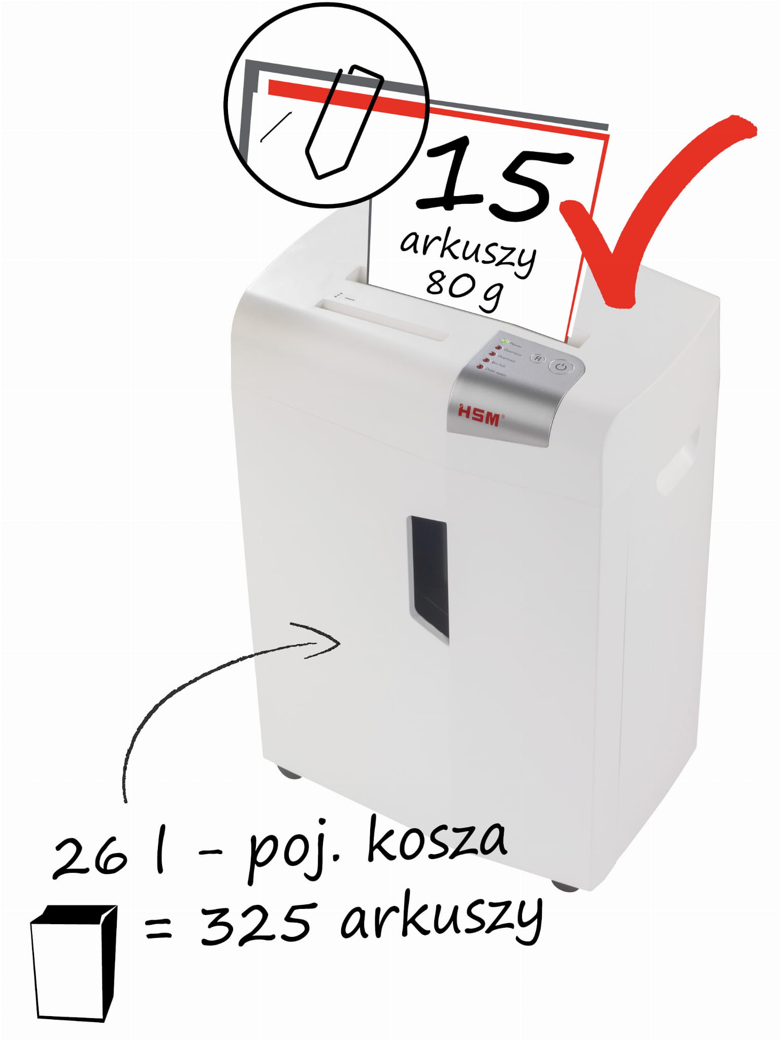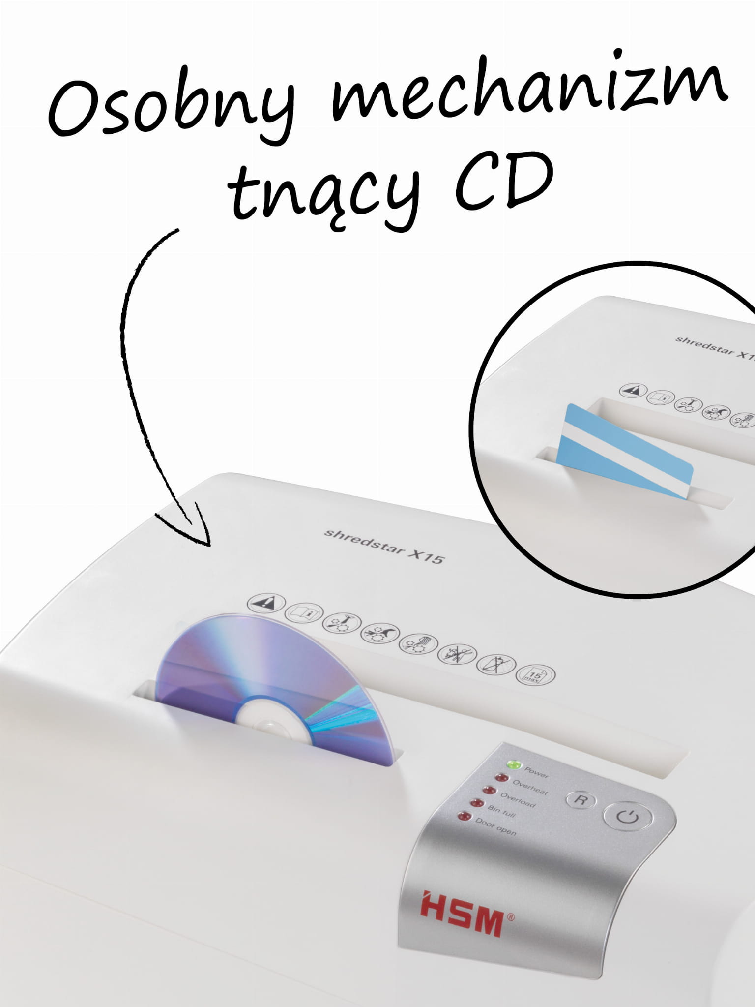 HSM shredstar X15 ścinek 4x37mm, 15 kartek CD/Karty kosz 26L
