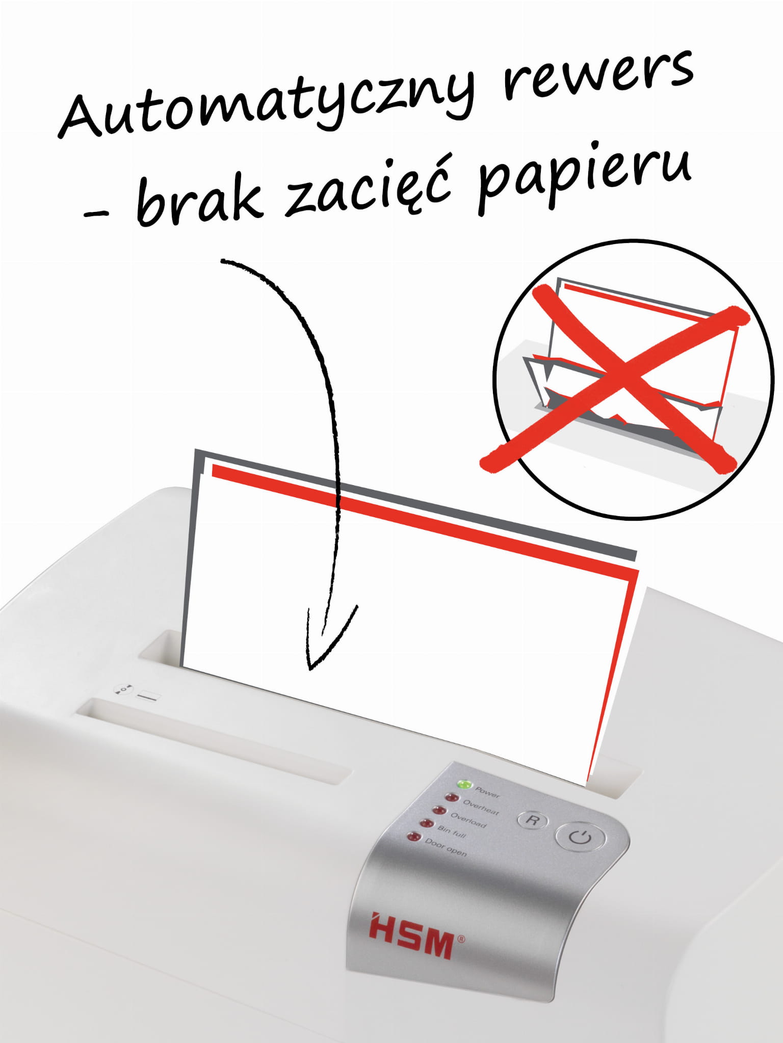 - Funkcja automatycznego wycofania pozwala uniknąć zacięcia papieru.