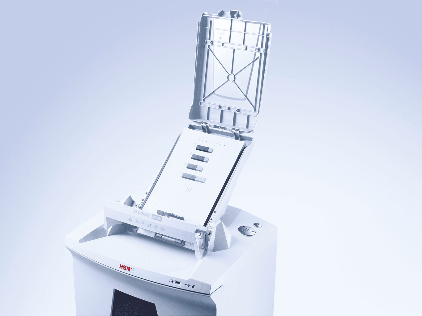 Łatwy i wygodny sposób na niszczenie danych w miejscu pracy. Niszczarka dokumentów z automatycznym podawaniem papieru i możliwością niszczenia dokumentów bez nadzoru dzięki blokadzie zabezpieczającej włożone stosy papieru przed nieupoważnionym dostępem. Automatyczny podajnik, blokada dostępu, oraz wysoka wydajność niszczenia do 500 arkuszy papieru z jednoczesną możliwością niszczenia pojedynczych kartek zapewnia maksymalną oszczędność czasu użytkownika.