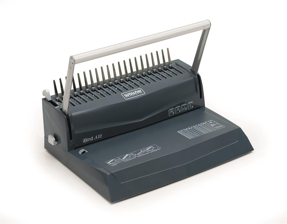 Bindownica Wallner model iBind A12 oprawia dokumentu grzbietem plastikowym.