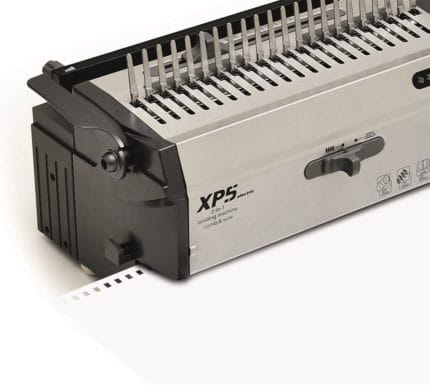 Bindownica elektryczna XP5 to urządzenie typu 2w1 oprawia dokumenty grzbietem plastikowym jak i drutowym.