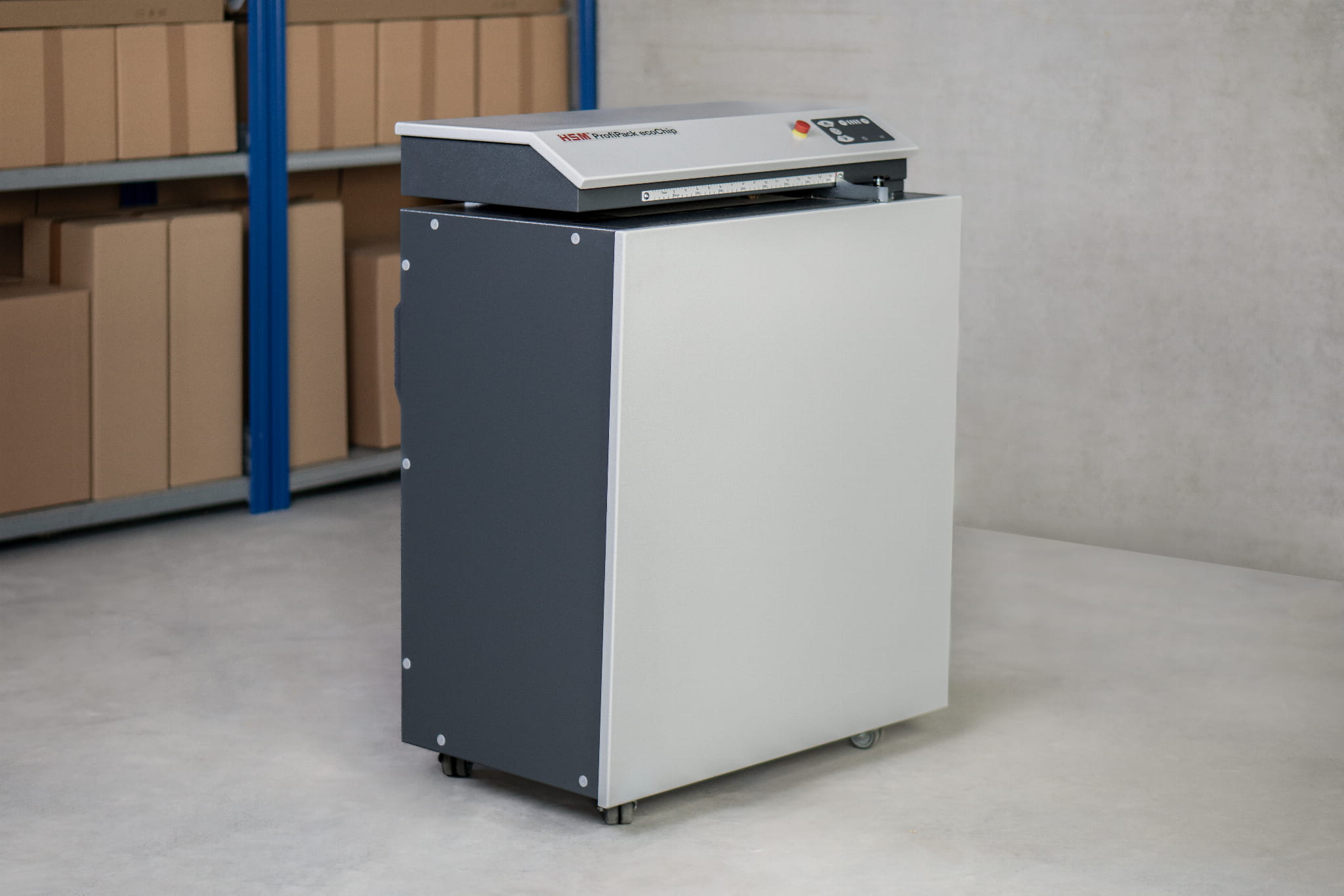 Urządzenie HSM ProfiPack ecoChip adapter zamienia zużyte kartony w materiał wypełniający — idealny do wysyłki kruchych produktów.