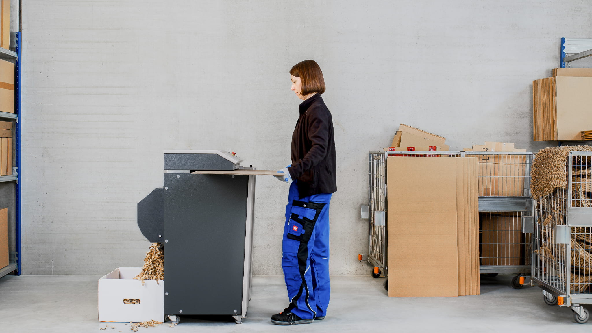 Produkcja tekturowych wiórów wykorzystywanych jako materiały opakowaniowe i wypełniające. Tekturowe wiórki stabilizują towar w opakowaniu, wypełniają puste przestrzenie i amortyzują uderzenia – i to wszystko bez użycia plastiku.