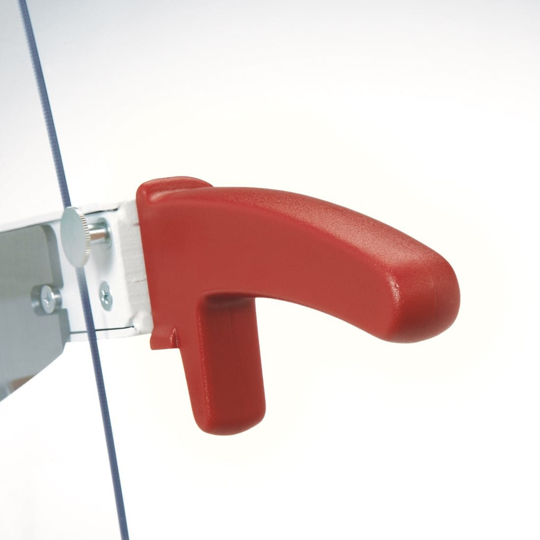 Dzięki temu solidnemu ręcznemu dociskowi można zastosować zmienny nacisk w zależności od ciętego materiału.