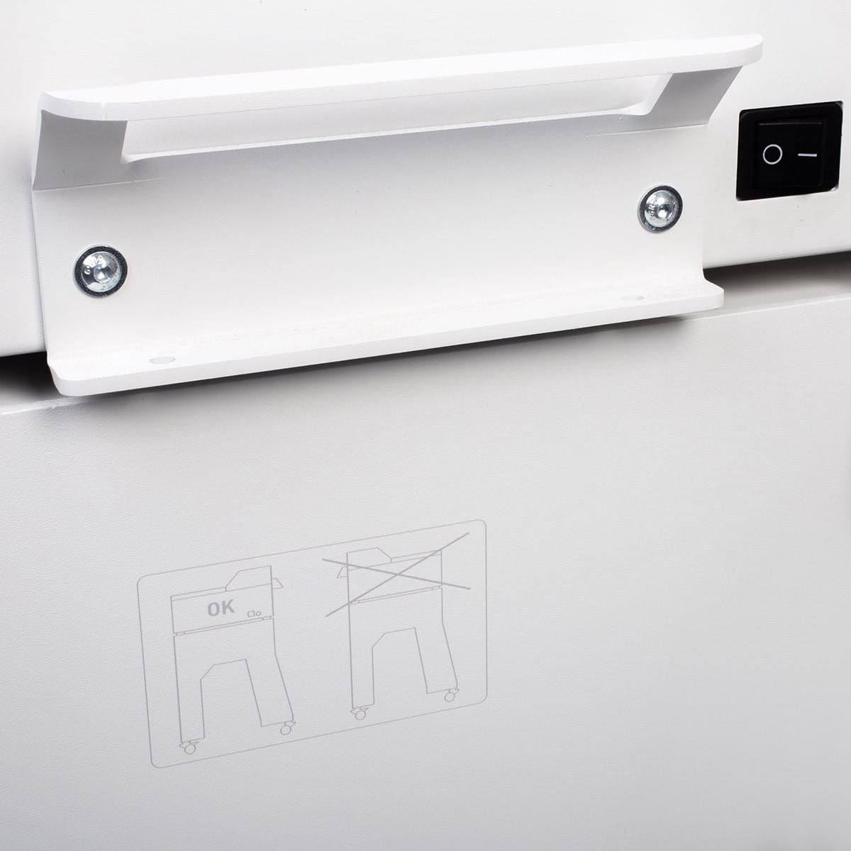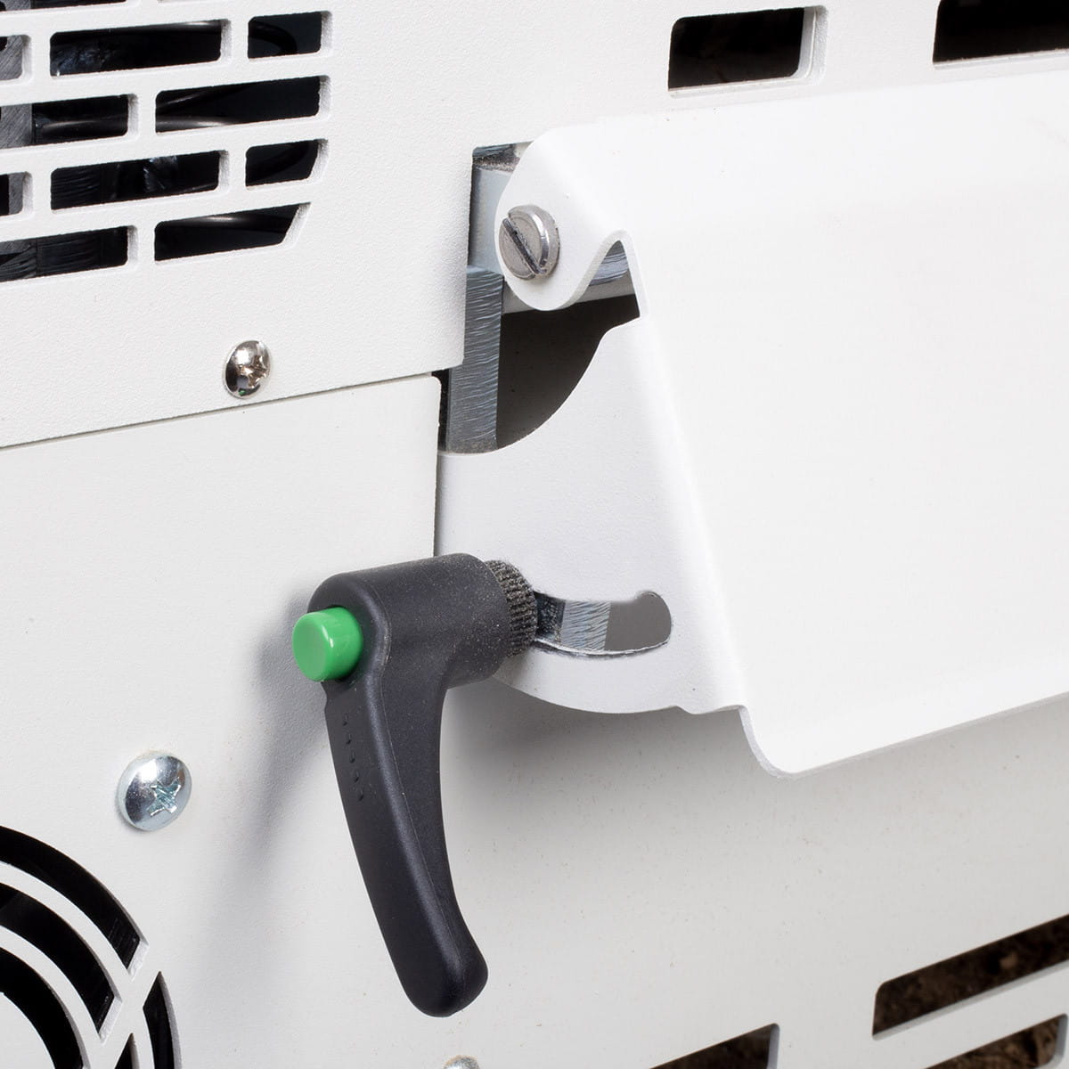 Stojak jest na kółkach z opcją blokady, więc bez problemu postawisz go w każdym miejscu, a w razie potrzeby łatwo przemieścisz do innego pomieszczenia. Kolejnym akcesorium dostępnym do naszej nacinarki jest wózek na kółkach, również z opcją blokady.