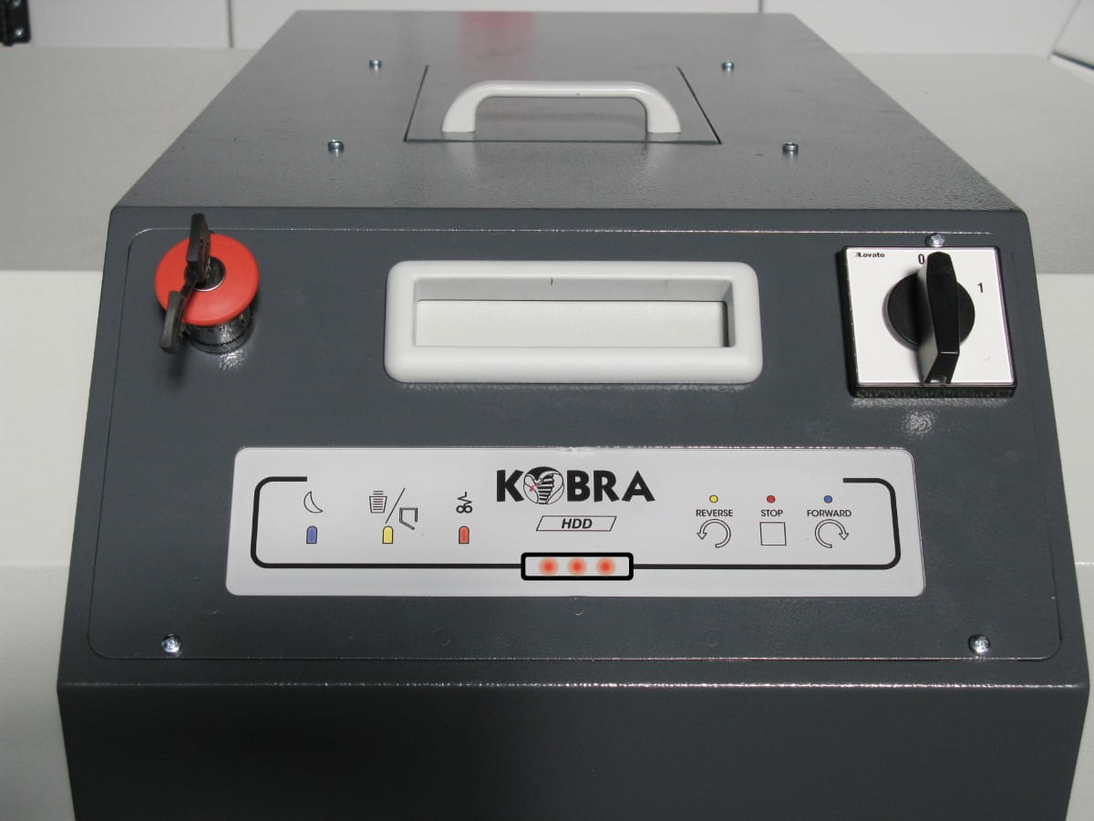 Kobra HDD, to wyjątkowo ciche urządzenie z silnikiem przystosowanym do pracy ciągłej przez 24 godziny na dobę. Niszczy cyfrowe nośniki danych na drobne 40 mm paski, niemożliwe do odtworzenia. Niezwykle trwały i wytrzymały silnik zamontowany w niszczarce Kobra HDD umożliwia niszczenie do 280 dysków na godzinę przy stałym źródle zasilania ze zwykłego gniazdka.